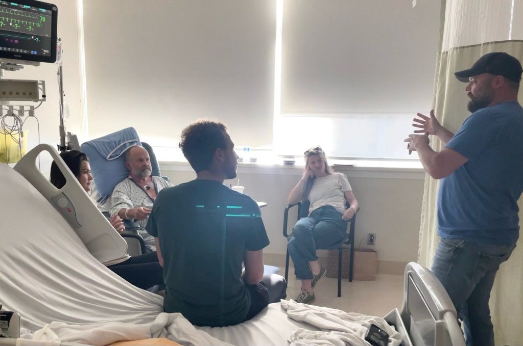 After the doctor left, Deb and the kids came into my room. Although some memories of that time are a bit blurry, I do remember telling them that I wasn’t really afraid and that I felt pretty good about the doctors’ plans. I remember telling them that if things went south my idea of heaven would be that they smiled whenever they thought of me… just like I do when I think of Mom or Dad. I told them a traditional heaven in the clouds would probably be crowded and tiresome after awhile. I don’t remember exactly how it came up but we did talk about them each getting a “Live, Love, Larry” tattoo. (The idea has since been downgraded to t-shirts instead.) 🙂